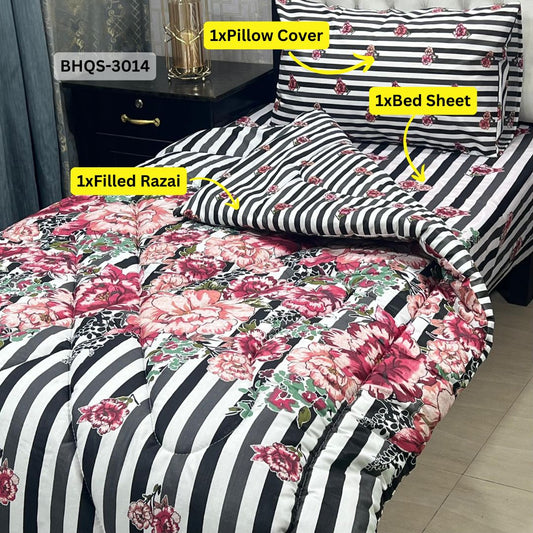 3 Pcs Mix Cotton Vicky Razai Set | Single Bed | Charpai | BHQS-3019