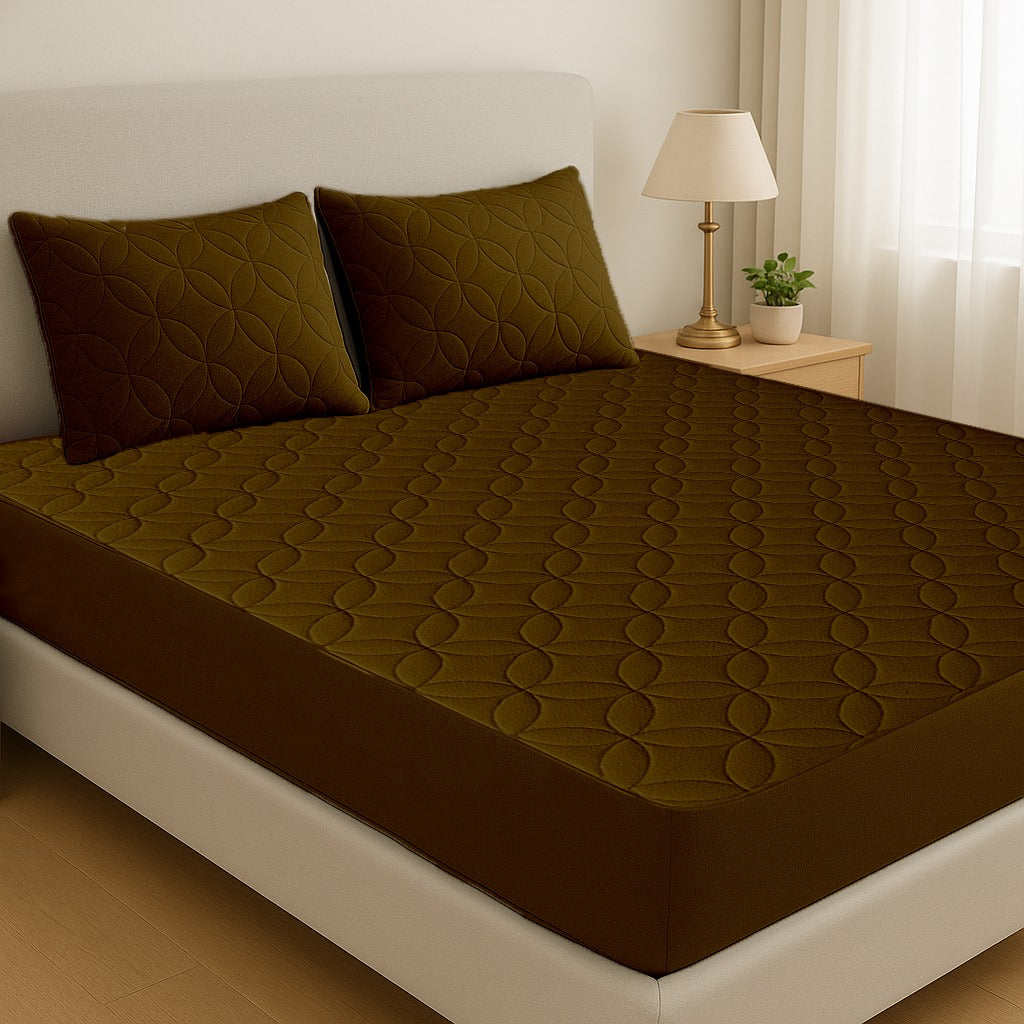 Comfortex Quilted Waterproof Mattress Cover | Protector | Brown | Double Bed | King Size