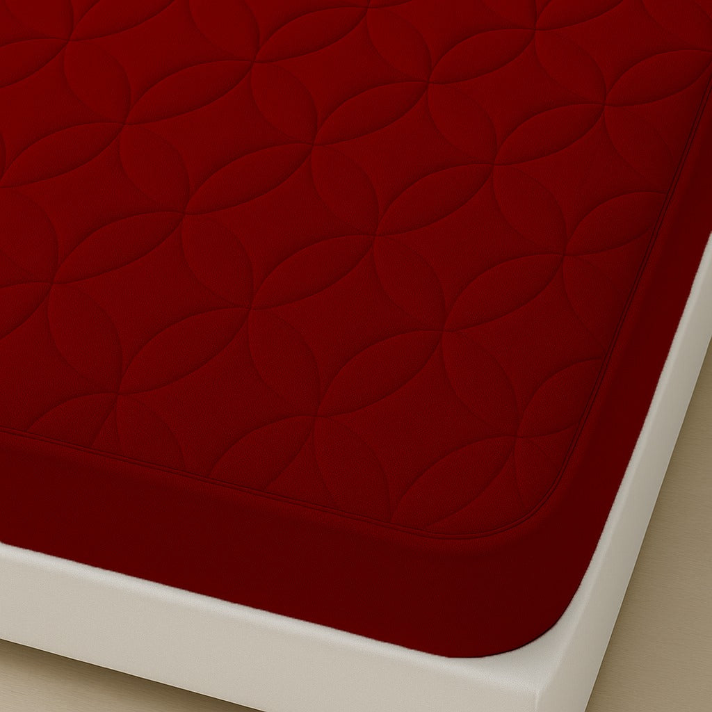 Comfortex Quilted Waterproof Mattress Cover | Protector | Maroon | Double Bed | King Size